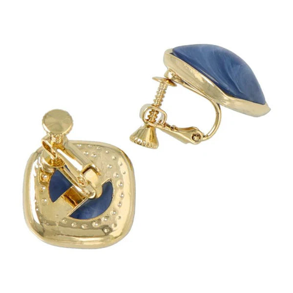 Japanese non-pierced earrings- Rhombus Marble Metal Frame Earrings – Screw-Back Style